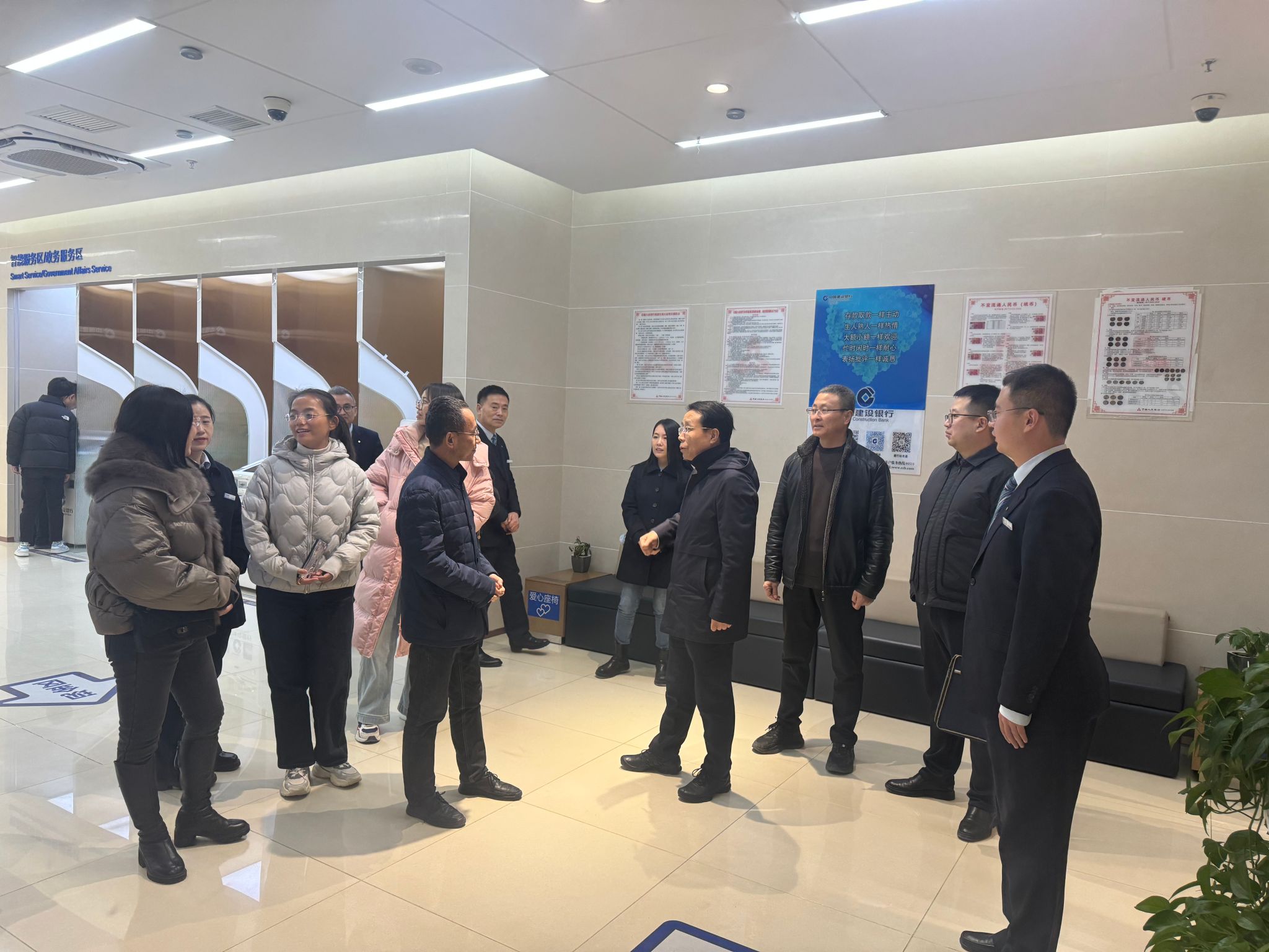 随后,双方党员同志来到建行延安东关支行营业网点,在营业大厅支行宋鹏副行长就资金管控、廉政风险防控、业务流程设计等内容进行交流分享;支行营业员演示了建行文明服务规程;客户经理向大家普及了防范电信诈骗、反洗钱——帮信罪、征信小常识等方面的内容。最后,全体党员参观银行服务大厅,学习大堂经理管理模式、对客户服务流程及方式等。